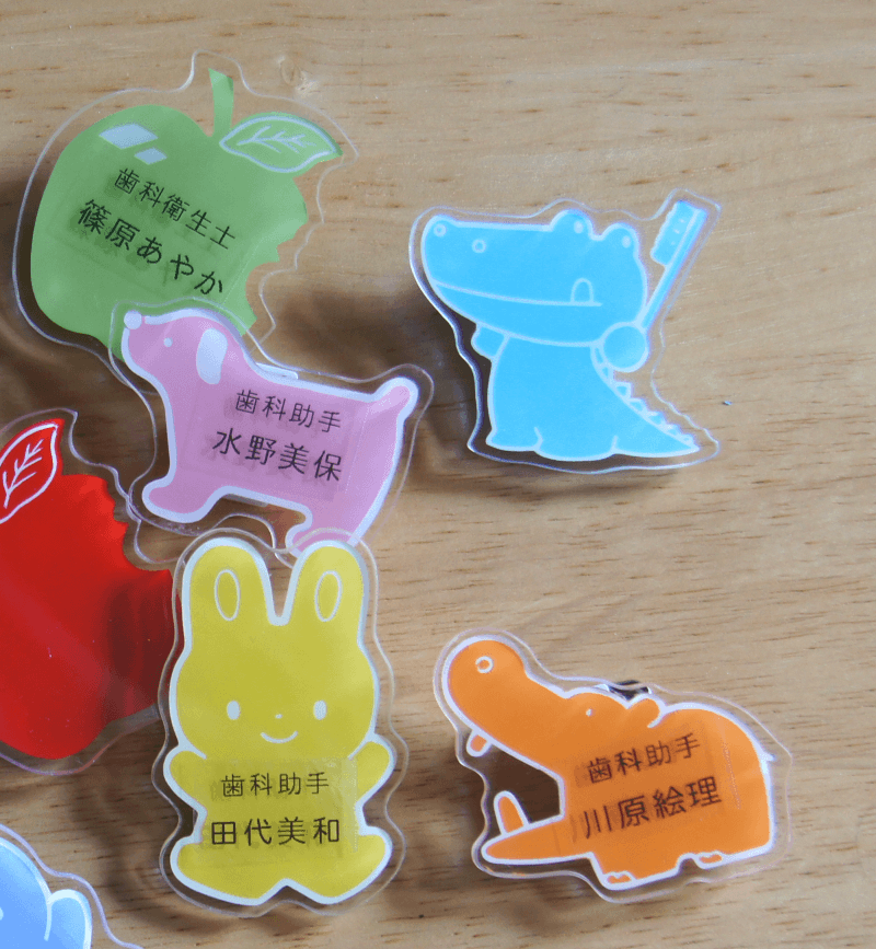 このページのカテゴリは名札 ワニ No.28ニヒルに笑う立ち姿。 名前部分はテプラシールを使用しているので簡単に張り替え可能です。お手元にテプラがあれば、すぐにできます。背面の安全ピン付きクリップで挟むことも、しっかり留めることも可能です。 名札のカラーについては「プレートカラー」をご覧ください。 1個からの注文が可能です。また、製作時にお名前を頂いた場合、弊社でテプラシールでお名前を出力できます。(予備を入れて、1名前に付き、3枚作成します。) サイズ縦 54x横 57(単位mm) 設置方法- 付属品安全ピン付きクリップ(両面テープで名札に貼り付けて提供) 参考価格※オープン価格(お問い合わせください) 実際の販売価格はお見積り後、確定いたします。 実物と写真の見た目の色が違う場合があります。ご了承ください。 ご注文前には「買う」のページをご確認ください。